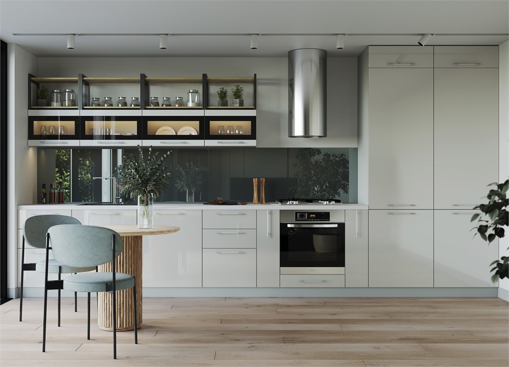 Модули кухни «Олива» можно легко комбинировать в зависимости от конфигурации помещения, выбранного варианта размещения встроенной техники. Элементы правильной прямоугольной формы смело врезаются в пространство без эффекта загромождения. Дополнительную легкость гордому профилю этой кухни придают фасады светлых оттенков, открытые полки углового варианта. Вставки из матового стекла немного «успокаивают» разгулявшееся вокруг глянцевое великолепие, придают фасадам благородный лоск. Дополняет образ кухни «Олива» качественная мебельная фурнитура. Ручки в минималистическом стиле не только подчеркивают правильные геометричные линии фасадов, но и дарят приятные тактильные ощущения, живо откликаются на легкое прикосновение, помогая заглянуть внутрь вместительных ящиков. Уход за бликующими глянцевыми фасадами из МДФ на самом деле не доставит хлопот даже очень занятой хозяйке. Минимум усилий, и кухня будет сохранять аккуратный презентабельный вид. На идеально гладкой поверхности фасадов сложно различить следы от касаний, что только на руку владельцам кухонного гарнитура. Модульная система «Олива» станет отличным штрихом в портрете современной функциональной кухни-столовой. А разнообразие цветовых решений позволит выбрать оттенки, которые наиболее близки к стилевой и цветовой концепции помещения.