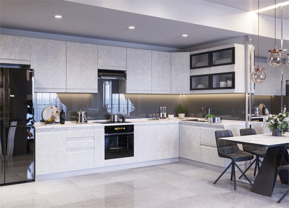 Кухня «Скала» эталон функциональности и нестандартного подхода Здесь каждая деталь подобрана с филигранной точностью, а о практичности гарнитура говорят фасады с характерным, не марким орнаментом. Умеренное количество элементов доставит максимум пользы, а отсутствующие ручки придадут кухне брутальный, современный вид. Такая мебель отлично подойдет для обустройства комнаты со свободной планировкой и типовым расположением. Неповторимые черты кухни «Скала»: И все-таки, она лучшая! Кухня этой коллекции представлена в цвете мрамор и гранит. Его фасады выполнены из матового МДФ. Поверхность не бликует при ярком свете, не оставляет отпечатков пальцев. В сборке кухонного гарнитура «Скала» чувствуется рука мастера, а дизайн привлекает изысканной простотой. Аккуратно проклеенные кромки, уместное использование элементов – при его изготовлении мы вложили душу и накопленные знания. Выразительные, лаконичные фасады с типичным «скалистым» рисунком проведут четко очерченную линию в помещении и станут яркой доминантой в комнате традиционного и современного стиля. Естественностью их рисунка можно любоваться до бесконечности, а к приятной бархатистой поверхности – прикасаться и радоваться ее практичности. Ваши гости будут восхищаться нестандартным дизайном кухни «Скала» и ее нерушимой гармонией!