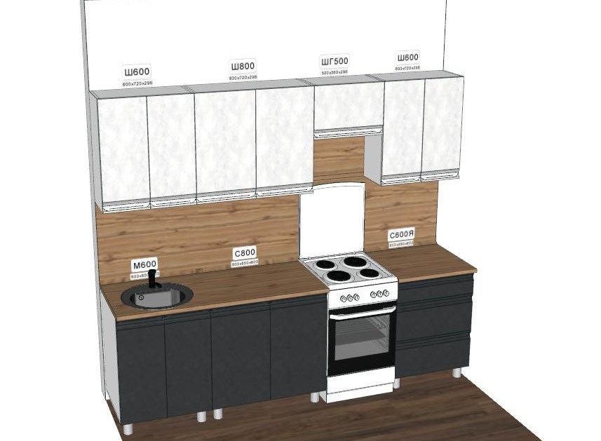 Так же комплект можно дополнить стеновой панелью, мойкой, посудосушителем, лотком для ложек и др.