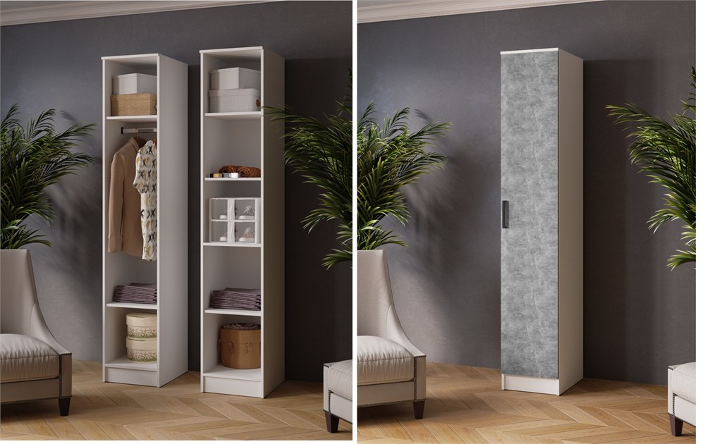 Ларс 0,4 имеет два варианта внутреннего наполнения: полки или стационарная металлическая штанга. Шкафы Ларс шириной 1200 и 1600 мм комбинированные, есть отдел с полками и отдел со стационарной металлической штангой