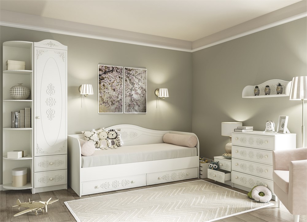 Подростку для его детской комнаты очень важно наличие личного пространства. Модульные системы гармонично вписываются в интерьер подростковой комнаты, где родители смогут, учитывая предпочтения ребенка расставить кровати, шкафы, комоды, шкаф-пенал и письменный стол. Красивый внешний вид модульной системы Ki-Ki идеальное решение для оформления комнаты для вашего ребенка. Для разработки дизайнерской концепции мебели учитывались пожелания психологов и педагогов. Единый стиль оформления модульной системы украсит подростковую комнату ребенка. Рекомендуется использовать мебель для помещений со светлыми стенами, в сочетании с обоями под детскую тематику. Мобильность модульного конструктора позволяет разместить элементы мебели органично, не создавая трудности для проживания ребенка в своей комнате. Для удобства зонирования помещения, родители могут разместить элементы мебели, учитывая пожелания ребенка, сохраняя при это комфорт и уют. Тихий и спокойный белый оттенок мебели поможет создать спокойную обстановку в комнате для самого ребенка.