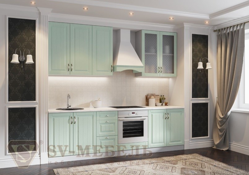 В стеклостворках используется стекло с красивым геометрическим рисунком. Фасады комплектуются металлическими ручками «Бронза» с керамическими вставками, некоторые модули комплектуются ручками-кнопками.