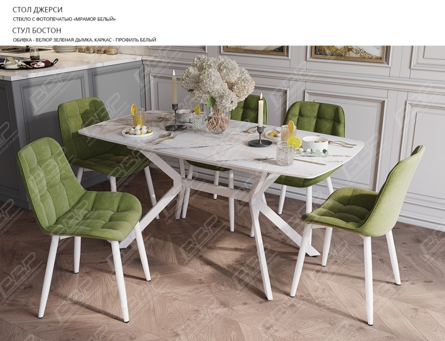 Столешница - Мрамор белый (сатинат), подстолье - белое