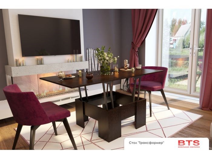 Современный стол Трансформер — это уникальный предмет интерьера, так как из небольшого журнального столика он легко превращается в полноценный обеденный стол. Данная модель будет идеальным вариантом для обустройства небольшого помещения, практично сочетая в себе функции двух столов. Изготовлен из ламинированной ДСП, он отличается экологичностью, качеством и надежностью.