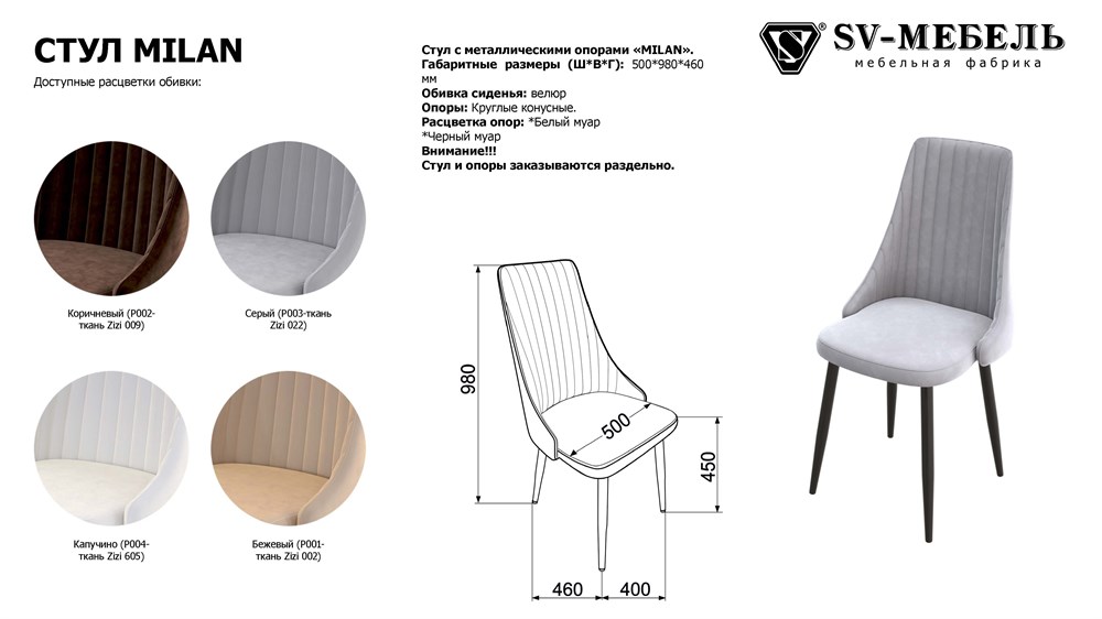 Стул с металлическими опорами «MILAN».