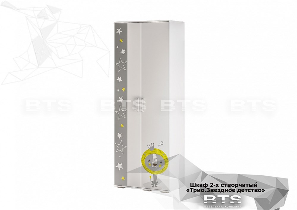 Универсальность сборки двухстворчатого шкафа ШК-09 как на правую, так и на левую сторону позволяет хранить вещи в удобном для ребенка варианте. Плательное отделение оснащено хромированной штангой овальной формы и антресольной полкой. Второе отделение шкафа имеет шесть полочных отделов.