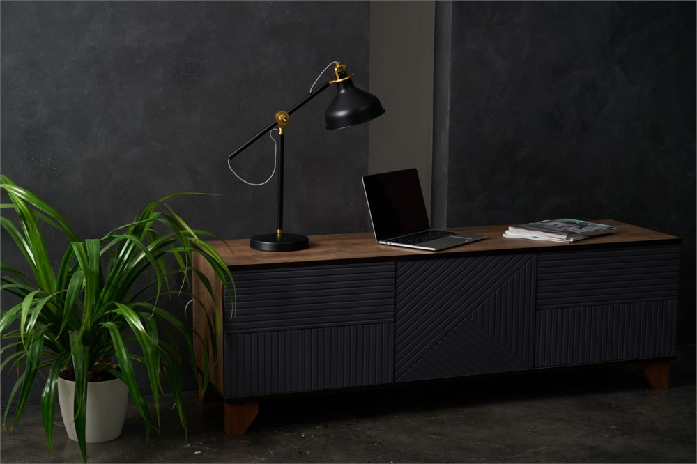 Тумба под ТВ предназначена для размещения телевизора, медиа-техники, личных вещей, предметов декора, поэтому имеет важное значение для гостиной. Данная модель оснащена боковыми выдвижными ящиками на шариковых направляющих полного выдвижения. Между ящиками располагается ниша с двумя полками, закрытая створкой. Для плавности хода створка закреплена на петли с доводчиками. В конструкции тумбы предусмотрен механизм открывания ящиков и створки «push-to-open». Фасад выдвижных ящиков оснащен ручками из массива дуба. Ножки изделия изготовлены из массива дерева и имеют регулировку по высоте. Возможно комбинирование расцветок корпуса и фасада.
