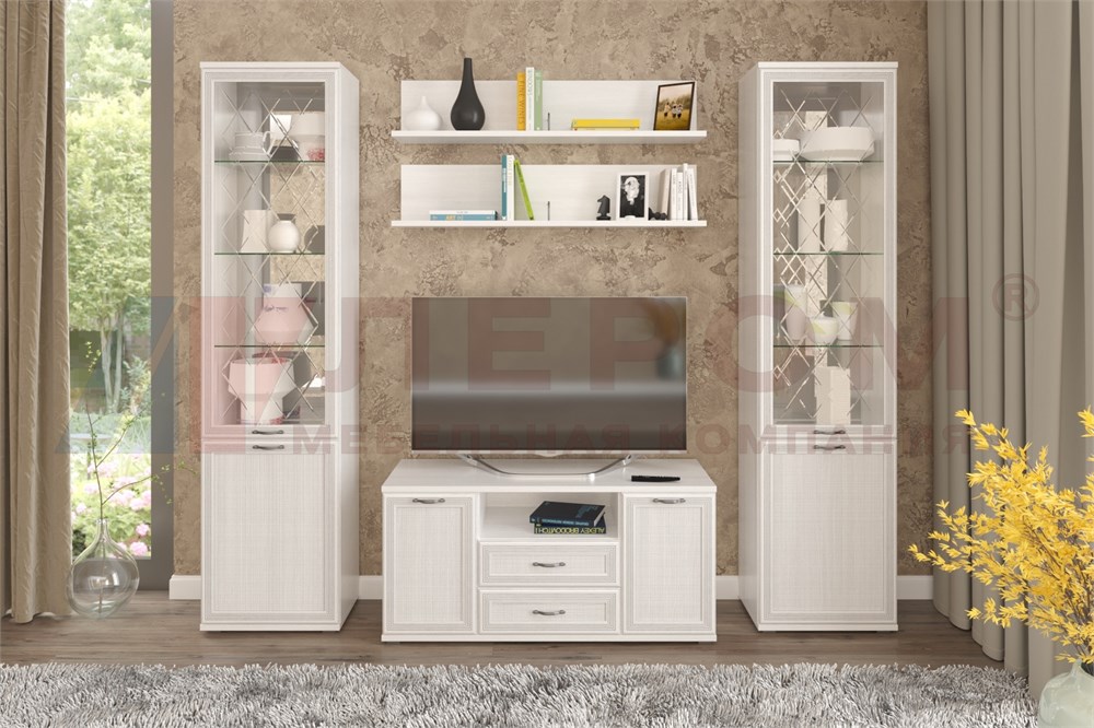 Фасад имеет уникальное сочетание глубокого тиснения и эффекта патины, присущей классическому стилю. Изящество фасада подчеркивает стекло с алмазной гравировкой и фацетом. Мебель изготавливается из высококачественных материалов: ЛДСП, МДФ (фасад).