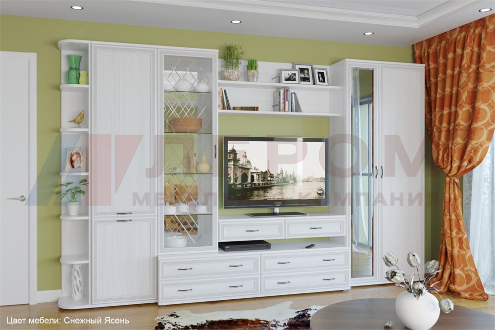 Фасад имеет уникальное сочетание глубокого тиснения и эффекта патины, присущей классическому стилю. Изящество фасада подчеркивает стекло с алмазной гравировкой и фацетом. Мебель изготавливается из высококачественных материалов: ЛДСП, МДФ (фасад).
