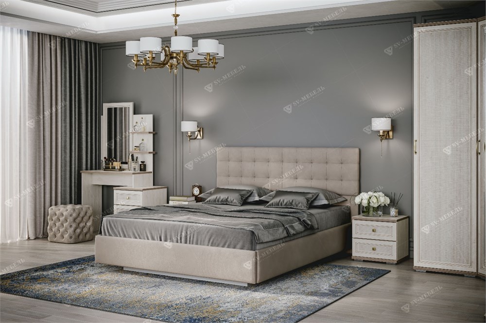 «Парящая» кровать с бархатистой велюровой обивкой, благодаря элегантному сдержанному дизайну, органично дополнит интерьер любой спальни. Кровать универсальна и сочетается как с мебелью в классическом стиле, например, с модульной системой «Александрия», так и с современными дизайнерскими решениями — модульными системами «Николь», «Гамма 20» и другими коллекциями фабрики.