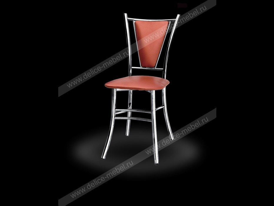 Каркас стула изготовлен из хромированного профиля, сидение и мягкая спинка - из винилискожи.