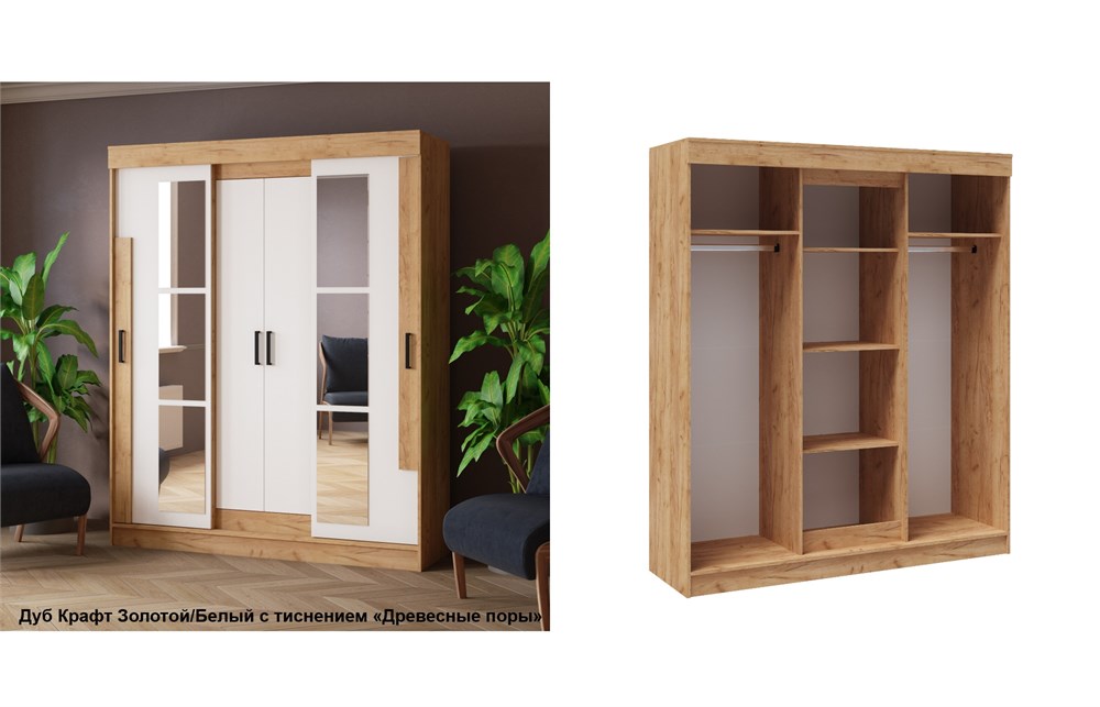 Внутренне наполнение шкафов универсальное: по центру- отделение с полками, слева и справа стационарные металлические штанги