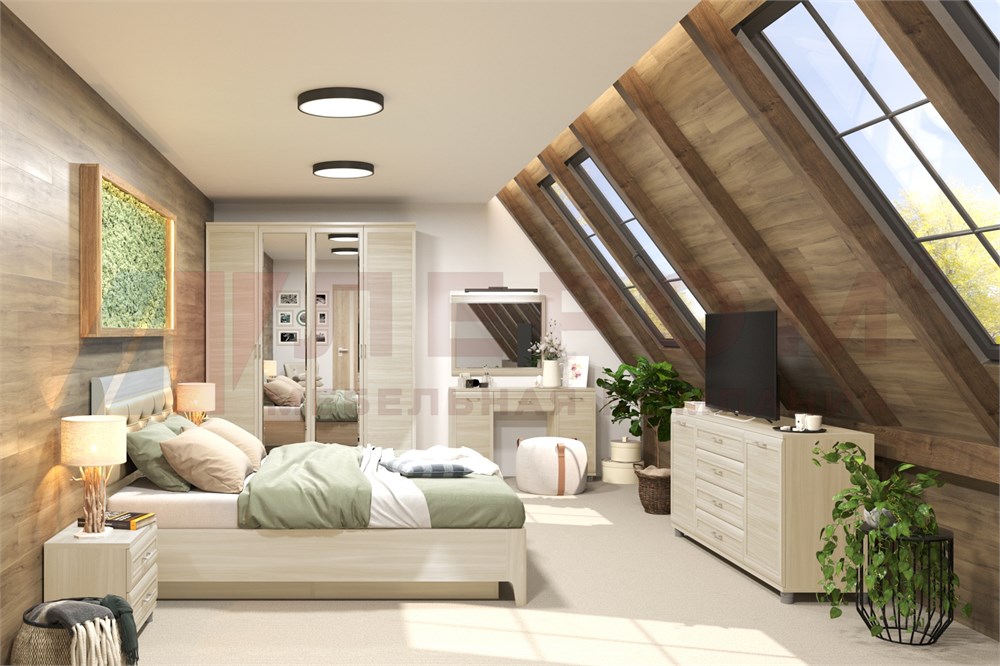 Композиция составлена из : Тумба ТБ-2862-2шт, Кровать КР-1073 (1,6х2,0), Шкаф ШК-2804-2шт, Зеркало ЗР-2801, Стол СТ-2802, Тумба ТБ-2812