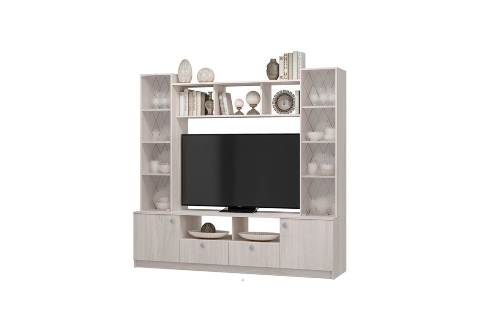 Модульная функциональная гостиная «Зарина», выполненная в классическом стиле, станет приятным акцентом в интерьере вашей квартиры. Спокойная древесная фактура цвета "ясень белый" делают модель изысканной и стильной.
